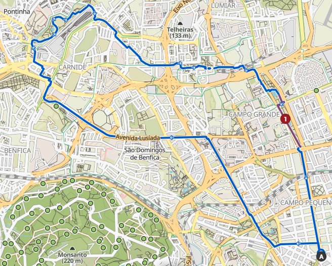No caminho de volta para o nosso local de piquenique em Campo Grande, vamos passar por outros jardins agradáveis e pelas ruas da zona antiga de Telheiras.