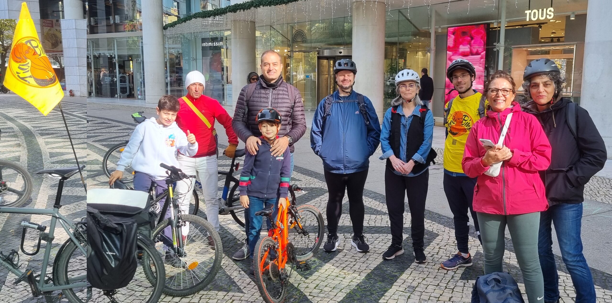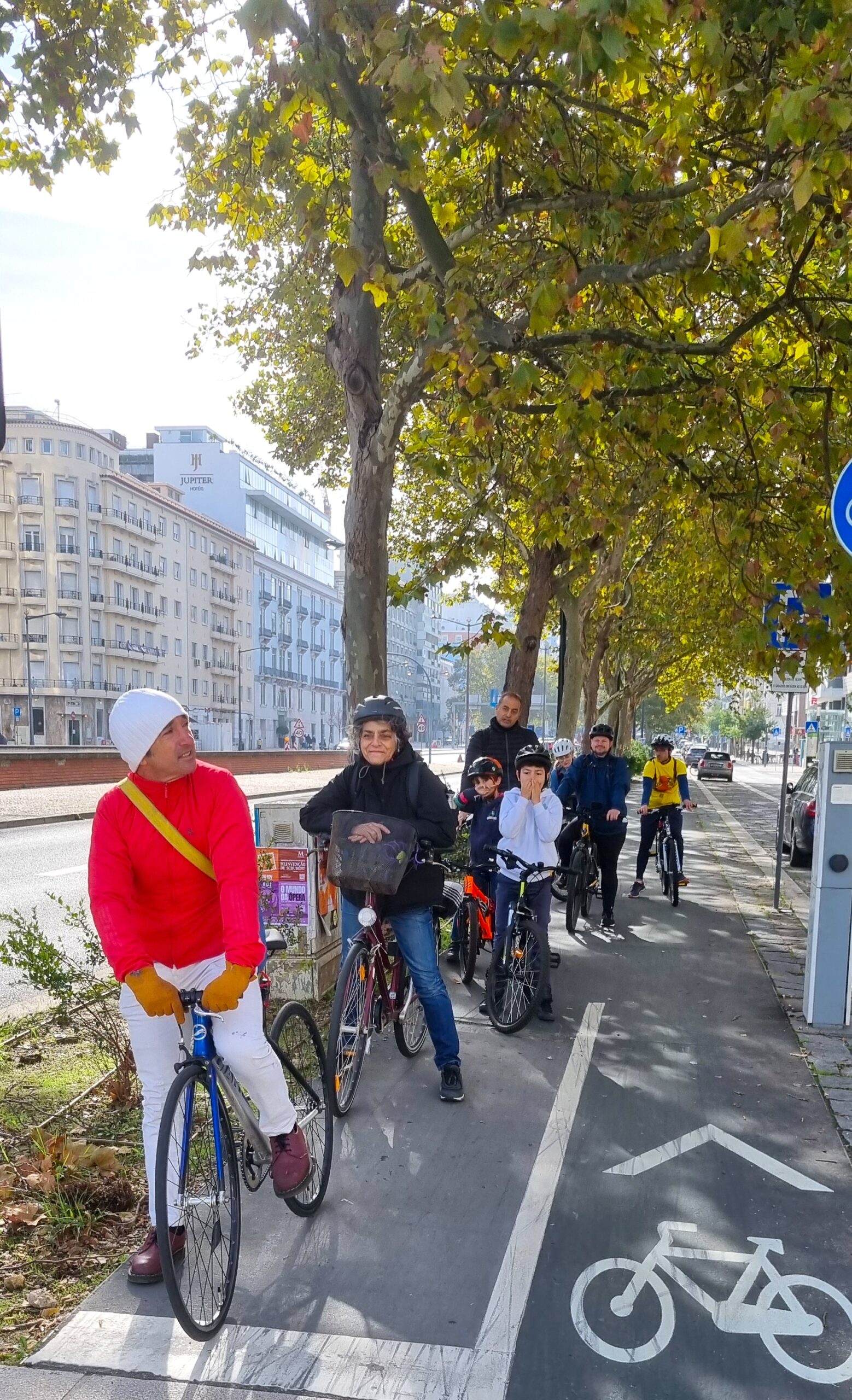 We met, as usual, at 10 o'clock in Saldanha, where Mark adjusted the bikes for the kids who were taking part, and Sérgio welcomed everyone and told the group what rules to follow to make sure the ride went smoothly.