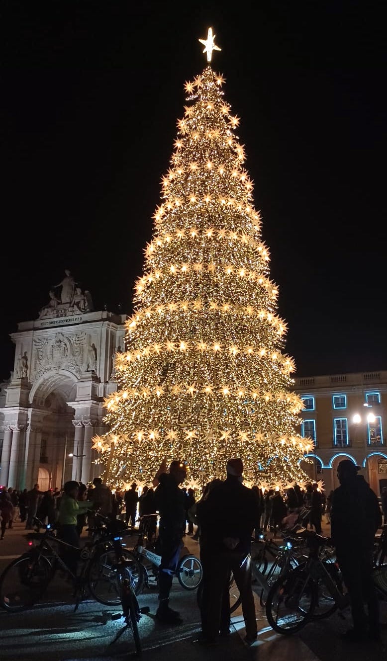 Não é a primeira vez que vestimo-nos e as nossas bicicletas com decorações e luzes festivas, já fizemos quatro anos de seguida como podes ver nas fotos dos anos anteriores aqui: 2024, 2023, 2022.