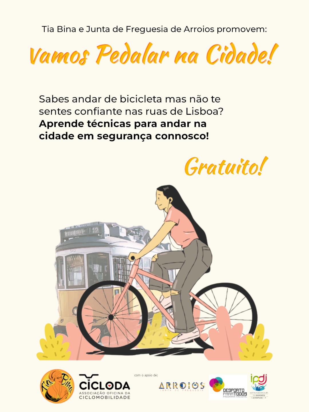 This opportunity is a partnership between CICLODA, the Tia Bina Project, and the Junta de Freguesia de Arroios, which promote environmentally sustainable development under the IPDJ’s National Sports for All Programme (PNDpT).